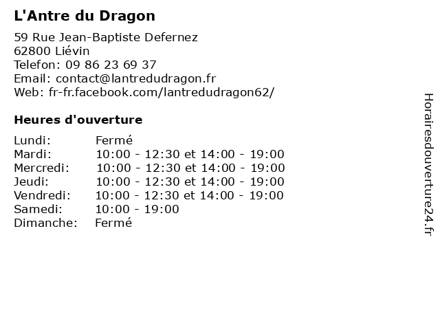 | Mardi | 10:00-12:30 et 14:00-19:00 |