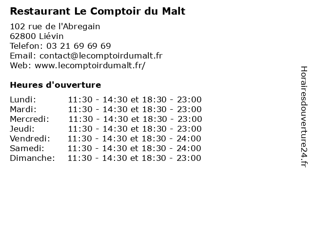 | Mercredi | 11:30-14:30 et 18:30-23:00 |