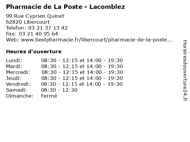 Termes de recherche pour Pharmacie de La Poste - Lacomblez:poste, la, de, pharmacie, conseils, médicament, homéopathie, lacomblez |