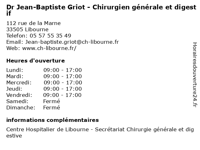 1 Dr Pauline Jaffrezic - Chirurgien général et digestif (Distance: 0,00 km) 112 rue de la Marne, 33505 Libourne chirurgie, chirurgien, digestif, digestive, disgestive, dr, et, foie, glandes, général, générale, jaffrezic, pauline, viscerale 2 Dr Mathieu Martenot - Chirurgien général et digestif (Distance: 0,00 km) 112 rue de la Marne, 33505 Libourne chirurgie, chirurgien, digestif, digestive, disgestive, dr, et, foie, glandes, général, générale, martenot, mathieu, viscerale 3 Dr Thomas Paumet - Chirurgien général et digestif (Distance: 0,00 km) 112 rue de la Marne, 33505 Libourne chirurgie, chirurgien, digestif, digestive, disgestive, dr, drthomas, et, foie, glandes, général, générale, paumet, thomas, viscerale 4 Dr Vincent Assénat - Chirurgien viscéral et digestif (Distance: 0,10 km) 119 Rue de la Marne, 33500 Libourne assénat, chirurgien, consultation, digestif, docteur, dr, et, med, médecin, traitement, vincent, viscéral 5 Dr Daniel Paterne - Chirurgien viscéral et digestif (Distance: 0,16 km) 119 Rue de la Marne, 33500 Libourne chirurgie, chirurgien, daniel, digestif, dr, et, general, paterne, soins, viscéral 6 Dr Jean-Charles Vignal - Chirurgien viscéral et digestif (Distance: 0,16 km) 119 Rue de la Marne, 33500 Libourne charles, chirurgie, chirurgien, digestif, dr, et, general, jean, soins, vignal, viscéral |