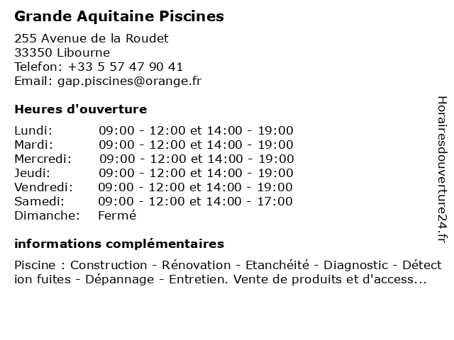 | Mercredi | 09:00-12:00 et 14:00-19:00 |