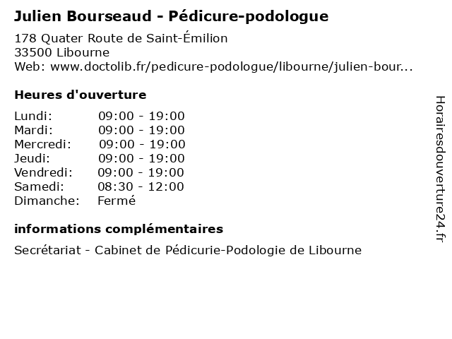 1 Nicolas Auneau - Pédicure-podologue (Distance: 0,00 km) 178 Quater Route de Saint-Émilion, 33500 Libourne auneau, cheville, nicolas, orteil, pied, podologue, pédicure 2 Dr Julien Boichut - Médecin généraliste (Distance: 1,45 km) 112 rue de la Marne, 33500 Libourne boichut, consultation, docteur, dr, généraliste, julien, med, médecin, traitement 3 Dr Julien Nodimar - Oto-Rhino-Laryngologue (ORL) (Distance: 1,54 km) 112 rue de la Marne, 33505 Libourne dr, julien, laryngologie, laryngologue, nodimar, orl, oto, rhino 4 Julien Guermont - Sage-femme échographiste (Distance: 1,55 km) 159 Rue de la Marne, 33500 Libourne consultation, docteur, femme, guermont, julien, med, médecin, sage, traitement, échographiste 5 Julien d'Orcel (Distance: 2,43 km) 2 Rue Thiers, 33500 Libourne bracelets, d'orcel, earrings, julien, pendants, rings, watches 6 Dr Julien Lebreton - Chirurgien-dentiste - secrétariat (Distance: 2,47 km) 42 Rue Lamothe, 33500 Libourne chirurgien, dentiste, docteur, dr, dr., julien, lebreton, medecins, sante, secrétariat |