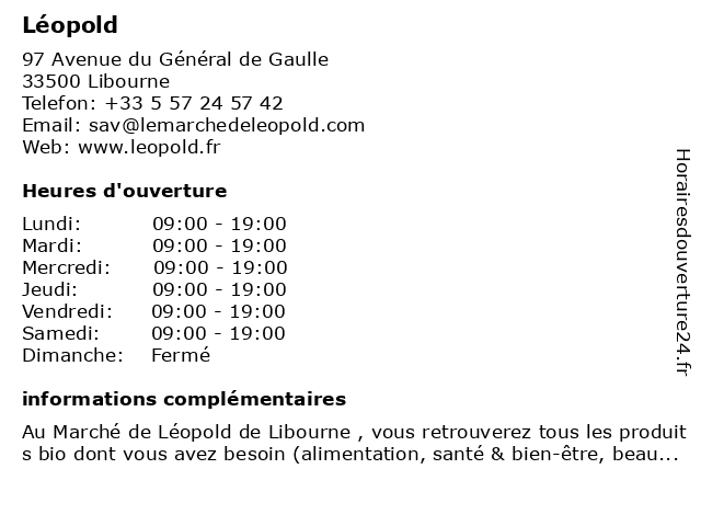 1 Brasserie Léopold (Distance: 28,89 km) 67 Cours de l'Intendance, 33000 Bordeaux apéritifs, boissons, brasserie, léopold 2 Le Marché de Léopold - Villenave d'Ornon (Distance: 32,02 km) 64 Route de Léognan, 33140 Villenave-d'Ornon cosmétique bio, d'ornon, de, le, les comptoirs de la bio, léopold, magasin bio, magasin bio 33, magasin bio 33140, magasin bio villenave-d'ornon, magasin bio à proximité, marché, villenave, vrac 5 Le Marché de Léopold - Eysines (Distance: 34,99 km) 317 Avenue du Médoc, 33320 Eysines de, eysines, le, les comptoirs de la bio, léopold, magasin bio, magasin bio 33320, magasin bio eysines, marché 6 Léopold Martin-Calvet - Ostéopathe (Distance: 35,92 km) 18 Avenue Gustave Eiffel, 33600 Pessac calvet, léopold, martin, ostéo, ostéopathe, ostéopathes, soins |