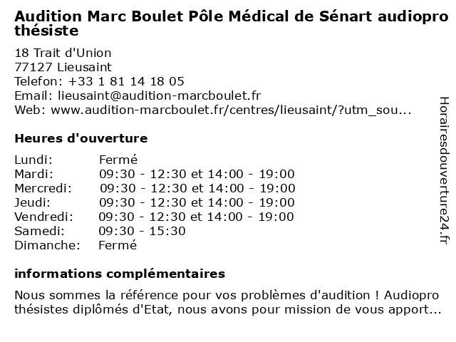 | Mercredi | 09:30-12:30 et 14:00-19:00 |