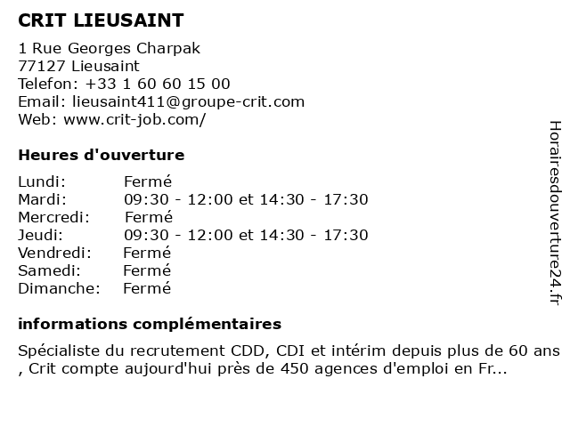 Termes de recherche pour CRIT LIEUSAINT:lieusaint, crit |