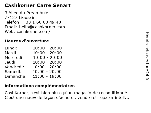 Termes de recherche pour Cashkorner Carre Senart:carré, sénart, cashkorner |