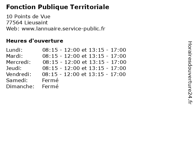 | Lundi | 08:15-12:00 et 13:15-17:00 |