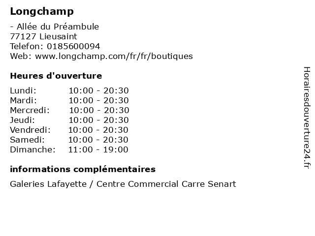 | Lundi | 10:00-20:30 |