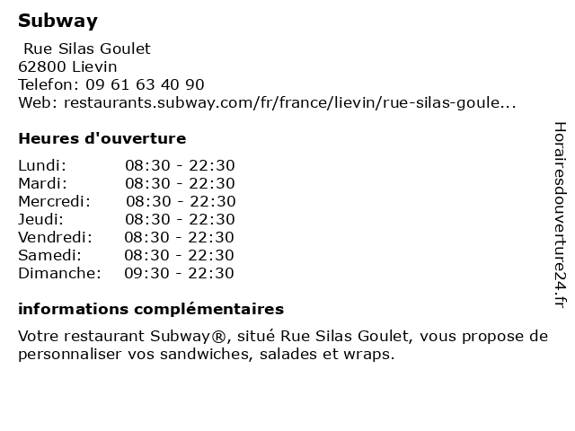 2 Subway (Distance: 10,23 km) 43 Route Nationale, 62950 Noyelles auchan, centre, commercial, noyelles, subway 3 Subway (Distance: 10,79 km) C.cial Carrefour, 62138 Auchy Les Mines fast-food, restaurant à emporter, restaurants, subway 4 Subway (Distance: 13,77 km) Speed Park Ave Du Bord Des Eaux, 62110 Henin Beaumont fast-food, restaurant à emporter, restaurants, subway 6 Subway (Distance: 13,93 km) C.cial Auchan, 62950 Noyelles Godault fast-food, restaurant à emporter, restaurants, subway |