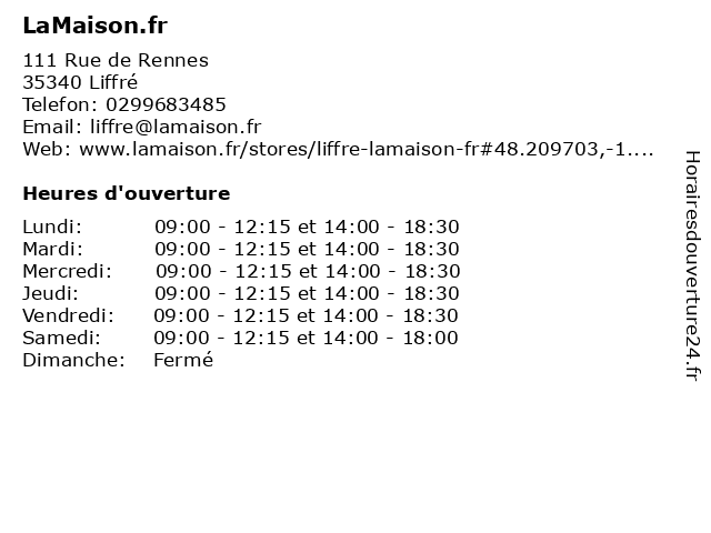 | Samedi | 09:00-12:15 et 14:00-18:00 |