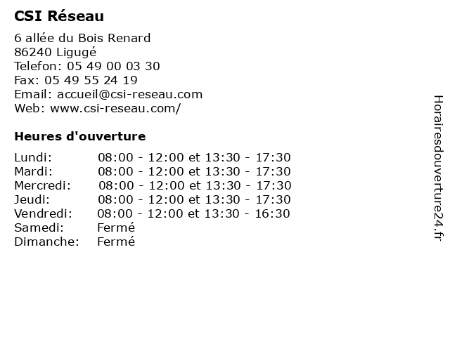 | Mardi | 08:00-12:00 et 13:30-17:30 |