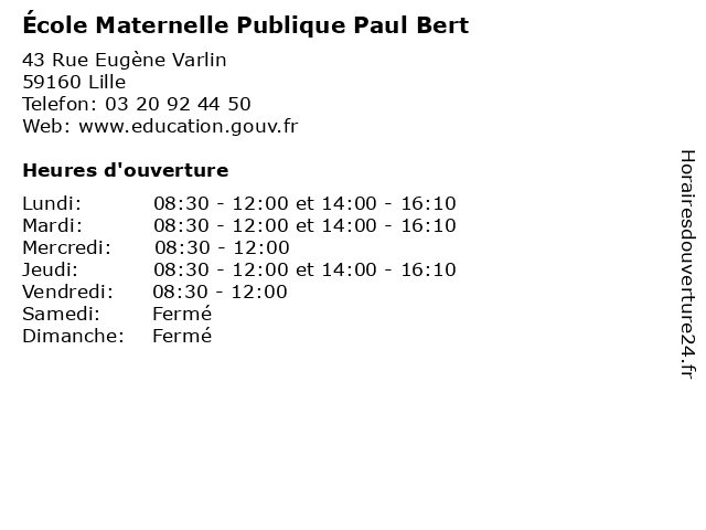 1 École maternelle publique Paul Bert (Distance: 13,78 km) 41 Rue Jourdan, 59200 Tourcoing bert, cours, education, maternelle, paul, publique, services, école 2 École Maternelle Publique Paul Bert (Distance: 14,92 km) 63 Avenue Paul Bert, 59390 Lys-lez-Lannoy bert, cours, education, maternelle, paul, publique, services, école 3 Fauchille Paul Guy Jean Olivier (Distance: 1,39 km) 24 Rue Du Bourg, 59130 Lambersart fauchille, guy, jean, olivier, paul, restaurants 4 Ravelo De Tovar Paul (Distance: 1,69 km) 43 Rue Gabrielle Bouveur, 59130 Lambersart boulangeries, détail, paul, ravelo, tovar 5 École Maternelle Publique Paul Langevin (Distance: 2,09 km) 263 Avenue Notebart, 59160 Lille cours, education, langevin, maternelle, paul, publique, services, école 6 École maternelle publique Paul Godin (Distance: 2,64 km) - Place Corneille, 59320 Sequedin cours, education, godin, maternelle, paul, publique, services, école |