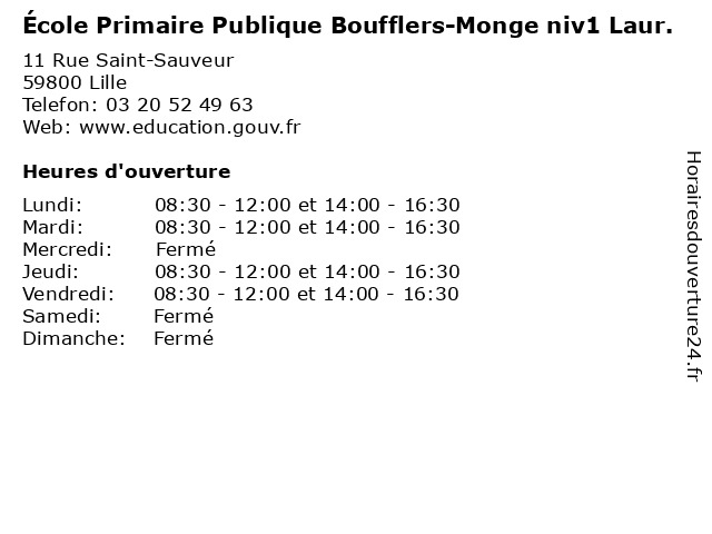 | Lundi | 08:30-12:00 et 14:00-16:30 |