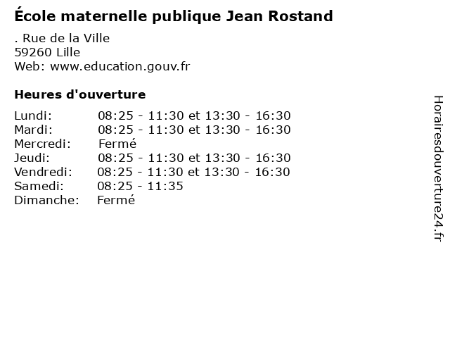 | Mardi | 08:25-11:30 et 13:30-16:30 |