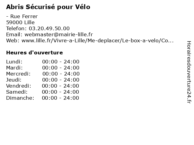 1 Abris Sécurisé pour Vélo (Distance: 0,60 km) - Rue de Longueil, 59000 Lille abonnement, abris, box, parcs, pour, stationnement, sécurisé, trajet, vélo, vélos 2 Abris Sécurisé pour Vélo (Distance: 0,75 km) - Rue des Annetons, 59000 Lille abonnement, abris, box, parcs, pour, stationnement, sécurisé, trajet, vélo, vélos 3 Abris Sécurisé pour Vélo (Distance: 1,23 km) - Rue de Condé, 59000 Lille abonnement, abris, box, parcs, pour, stationnement, sécurisé, trajet, vélo, vélos 4 Abris Sécurisé pour Vélo (Distance: 1,71 km) - Rue Courbet, 59000 Lille abonnement, abris, box, parcs, pour, stationnement, sécurisé, trajet, vélo, vélos 5 Abris Sécurisé pour Vélo (Distance: 1,86 km) - Rue de Coulmiers, 59000 Lille abonnement, abris, box, parcs, pour, stationnement, sécurisé, trajet, vélo, vélos 6 Abris Sécurisé pour Vélo (Distance: 1,89 km) - Rue Barthélémy Delespaul, 59000 Lille abonnement, abris, box, parcs, pour, stationnement, sécurisé, trajet, vélo, vélos |