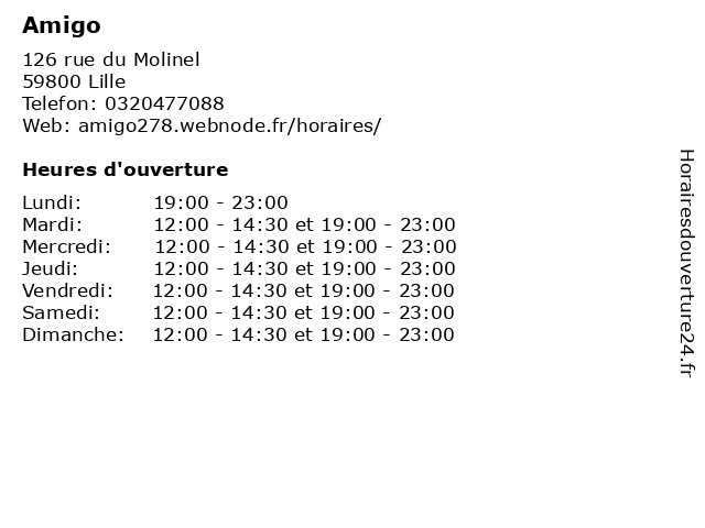 | Mardi | 12:00-14:30 et 19:00-23:00 |