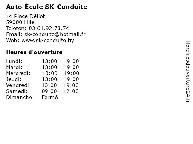 1 L’École de conduite (Distance: 1,51 km) 162 rue Pierre Mauroy, 59000 Lille auto école, code, conduite, cours, de, formation, l’école, permis 2 Ecole de Conduite Française (Distance: 3,44 km) 1 Rue Port Fluvial, 59211 SANTES boat, camper, caravan, conduite, de, driving license, driving schools, ecole, education, française, motorbike, professional training, recovery points internship, trailer, training, training employees; for driving a car 3 ECF - Ecole de Conduite Française (Distance: 3,44 km) 1 Rue Port Fluvial, 59211 Santes auto / moto, conduite, de, ecf, ecole, entraînement, française, services 4 Auto-Ecole Permis Pas Cher (Cours de Conduite) (Distance: 3,48 km) 41 rue du Général de Gaulle, 59110 La Madeleine auto, auto / moto, cher, conduite, cours, de, ecole, entraînement, pas, permis, services 5 Auto-Ecole #PasseportConduite (cours de conduite) (Distance: 3,75 km) 31, rue du moulin, 59110 La Madeleine #passeportconduite, auto, auto / moto, conduite, cours, de, ecole, entraînement, services 6 Auto école Conduite Latitude (Distance: 7,82 km) 30 Avenue Nelson Mandela, 59160 Capinghem auto, auto-école, capinghem, conduite, formation, latitude, permis, école |