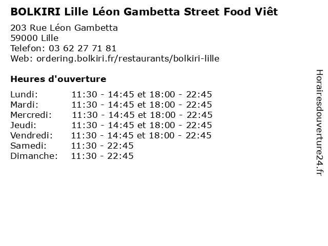 | Termes de recherche pour BOLKIRI Lille Léon Gambetta Street Food Viêt:lille, leon, food, gambetta, restaurants, street, fast-food, viet, restaurant asiatique, restaurant thailandais, restaurant chinois, service de livraison de repas à domicile, bolkiri |