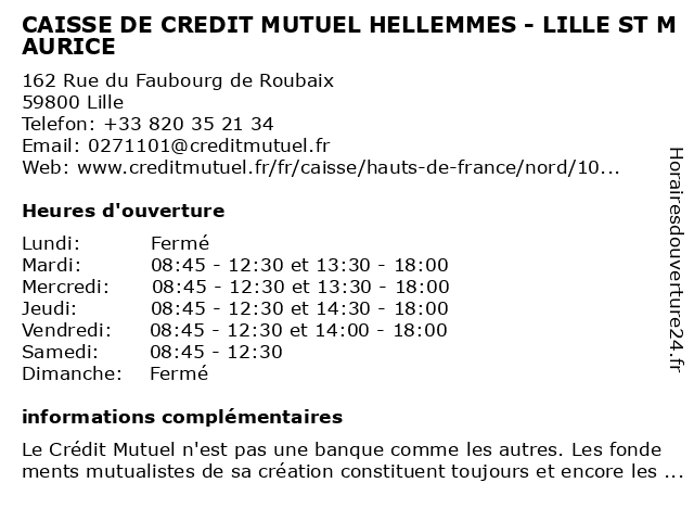 Termes de recherche pour CAISSE DE CREDIT MUTUEL HELLEMMES - LILLE ST MAURICE:lille, de, st, hellemmes, crédit, mutuel, caisse, maurice |