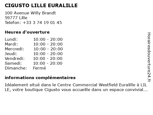 Termes de recherche pour CIGUSTO LILLE EURALILLE:lille, cigusto, euralille |