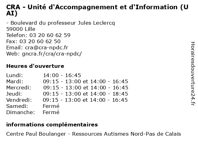 Termes de recherche pour CRA - Unité d'Accompagnement et d'Information (UAI):et, de, calais, horaires, centre, nord, accueil, unité, pas, conseil, information, cra, d'information, ressources, écoute, orientation, d'accompagnement, uai, autismes, d'accompagement |