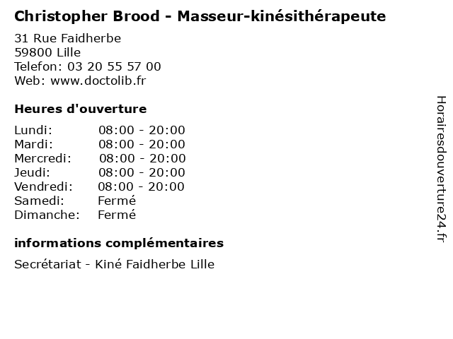 1 Brood (Distance: 1,71 km) 105 Boulevard Victor Hugo, 59000 Lille boulangerie, brood, glacier, pâtisserie, traiteur 2 Dr Christopher Hurt - Cardiologue (Distance: 1,85 km) 128 Boulevard Vauban, 59800 Lille cardio, cardiologie, cardiologue, christopher, coeur, dr, hurt 3 Dr Christopher Niles - Anesthésiste (Distance: 5,58 km) 96 Rue Gustave Delory, 59810 Lesquin anes, anesthésiste, christopher, dr, niles, réa, réanimateur 4 Decottenier Christopher (Distance: 6,22 km) 469 Rue De Quesnoy, 59118 Wambrechies christopher, decottenier, restaurants 5 Salon De Thé Le Moulin (Distance: 11,34 km) Salon De The Le Moulin, 59200 Tourcoing christopher, moulin, restaurants, robin, salon, thé 6 Kris Frite (Distance: 21,75 km) Monsieur Christopher Richard, 62138 Douvrin christopher, frite, kris, restaurants, richard |