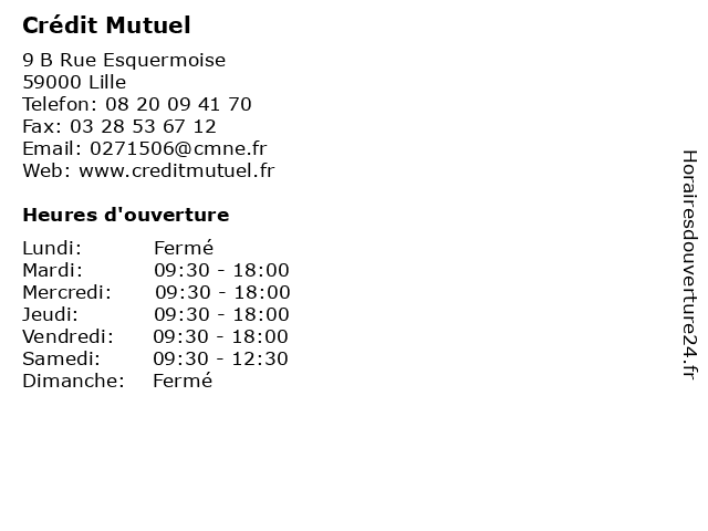 1 Crédit Mutuel (Distance: 0,03 km) 9 b Rue Esquermoise, 59800 Lille compagnie de téléphone, crédit, mutuel, organisme d'assurance 2 Crédit Mutuel (Distance: 0,47 km) 26 PLACE LOUISE DE BETTIGNIES, 59800 LILLE crédit, l'argent, l'épargne, le crédit, les banques, les prêts, mutuel 3 Crédit Mutuel (Distance: 0,53 km) 2 Place Richebe, 59800 Lille agence, assurance, bancaire, banque, crédit, mutuel 4 Crédit Mutuel (Distance: 0,53 km) 4 Place richebe, 59011 Lille compagnie de téléphone, crédit, mutuel, organisme d'assurance 5 Crédit Mutuel (Distance: 0,54 km) 4 Place richebe, 59800 Lille compagnie de téléphone, crédit, mutuel, organisme d'assurance 6 Crédit Mutuel (Distance: 0,54 km) 2 Place Richebe, 59800 Lille compagnie de téléphone, crédit, mutuel, organisme d'assurance |