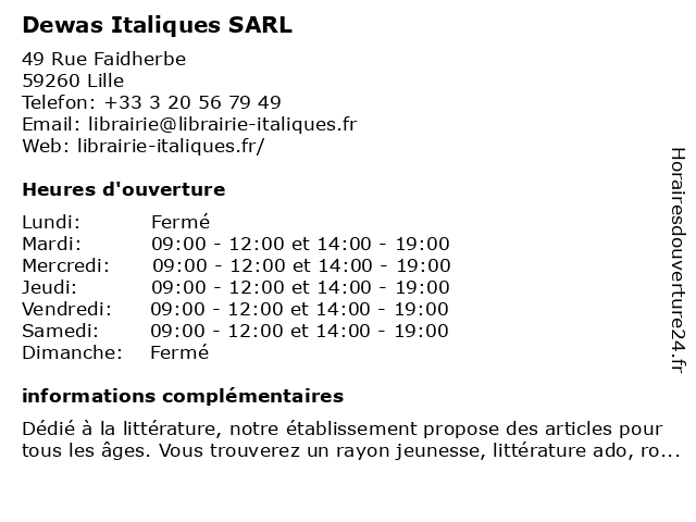 | Samedi | 09:00-12:00 et 14:00-19:00 |
