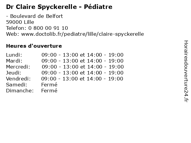 | Lundi | 09:00-13:00 et 14:00-19:00 |