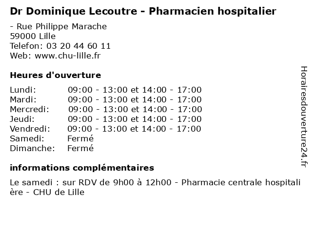 | Lundi | 09:00-13:00 et 14:00-17:00 |