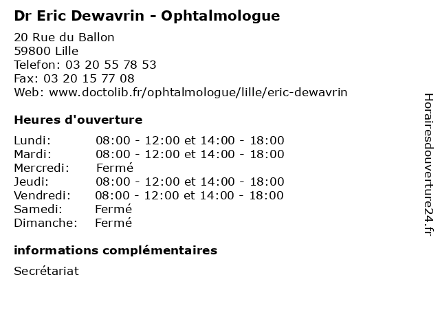 1 Dr Eric Dewavrin - Ophtalmologue (Distance: 0,06 km) 69 Rue de la Louvière, 59042 Lille consultation, dewavrin, docteur, dr, eric, med, médecin, ophtalmologue, traitement 2 Dr Antoine Curan - Ophtalmologue (Distance: 0,00 km) 20 Rue du Ballon, 59800 Lille antoine, curan, dr, ophtalmologie, ophtalmologistes, ophtalmologue, vision 3 Dr Guillaume Besombes - Ophtalmologue (Distance: 0,00 km) 20 Rue du Ballon, 59800 Lille besombes, dr, guillaume, ophtalmologie, ophtalmologistes, ophtalmologue, vision 4 Dr. Sylvain Blanchard - Ophtalmologue (Distance: 0,02 km) 20 Rue du ballon, 59000 Lille blanchard, consultation, docteur, dr., medecins, ophtalmologie, ophtalmologue, rendez, santé, sur, sylvain, vous 5 Dr Imen Bouabane - Ophtalmologue (Distance: 0,37 km) 4 Avenue Emile Zola, 59800 Lille 0phtalmologistes, bouabane, dr, imen, ophtalmologie, ophtalmologue, vision 6 Dr Ikram Bouacha - Ophtalmologue (Distance: 5,59 km) - Avenue du Professeur Emile Laine, 59037 Lille bouacha, dr, hôpital, ikram, ophtalmologie, ophtalmologistes, ophtalmologue, salengro, vision |