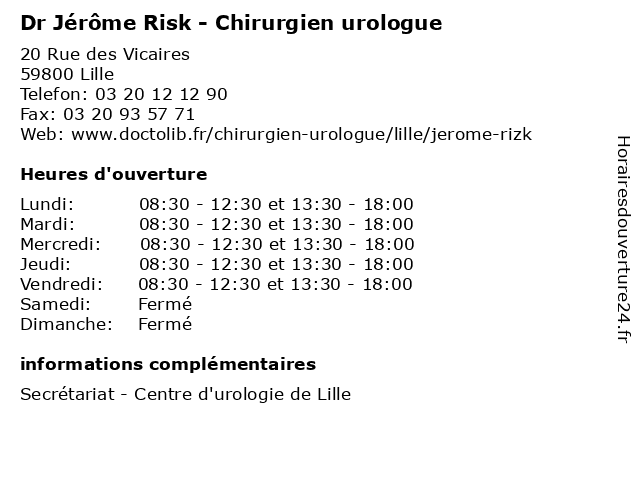 1 Dr Jérôme Rizk - Chirurgien urologue (Distance: 0,00 km) 20 Rue des Vicaires, 59800 Lille chirurgien, dr, jérôme, medecin, rizk, sante, soins, urologue 2 Dr Stéphanie Delaval - Chirurgien urologue (Distance: 0,00 km) 20 Rue des Vicaires, 59800 Lille chirurgien, delaval, dr, medecin, sante, soins, stéphanie, urologue 3 Dr Patrick Bertrand - Chirurgien urologue (Distance: 0,17 km) 69 Rue de la Louvière, 59042 Lille bertrand, chirurgien, consultation, docteur, dr, med, médecin, patrick, traitement, urologue 4 Dr Nicolas Blois - Chirurgien urologue (Distance: 0,17 km) 69 Rue de la Louvière, 59042 Lille blois, chirurgien, consultation, docteur, dr, med, médecin, nicolas, traitement, urologue 5 Dr Pierre Colin - Chirurgien urologue (Distance: 0,17 km) 69 rue de la Louvière, 59042 Lille chirurgien, colin, consultation, docteur, dr, med, médecin, pierre, traitement, urologue 6 Dr Stéphanie Delaval - Chirurgien urologue (Distance: 0,17 km) 69 Rue de la Louvière, 59042 Lille chirurgien, consultation, delaval, docteur, dr, med, médecin, stéphanie, traitement, urologue |