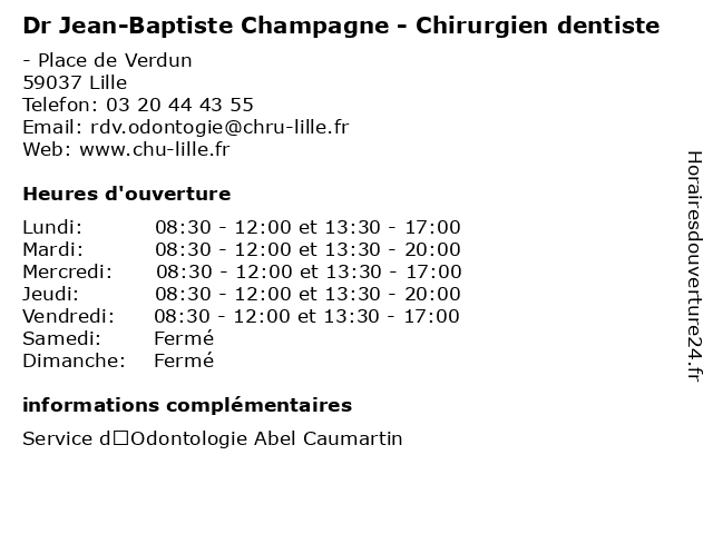 | 1 Dr Jean-Baptiste Marc - Médecin urgentiste (Distance: 0,30 km) 5 Avenue Oscar Lambret, 59000 Lille baptiste, centre, de, dr, hospitalier, jean, lille, marc, medecin, médecin, régional, soins, universitaire, urgence, urgentiste 2 Dr Jean-Baptiste Faivre - Radiologue (Distance: 0,43 km) - Boulevard du Professeur Jules Leclercq, 59000 Lille baptiste, calmette, diagnostique, dr, faivre, hôpital, imagerie, jean, radiologie, radiologue, thérapeutique 3 Dr Jean-Baptiste Facon - Chirurgien orthopédiste et traumatologue (Distance: 0,74 km) - Rue Emile Laine, 59000 Lille baptiste, chirurgien, consultation, docteur, dr, et, facon, jean, med, médecin, orthopédiste, traitement, traumatologue 4 Dr Jean-Baptiste Dally - Cardiologue (Distance: 1,71 km) 162 Rue du Maréchal Foch, 59120 Loos baptiste, cardio, cardiologie, cardiologue, coeur, dally, dr, jean 5 Jean-Baptiste Duc - Ostéopathe (Distance: 2,21 km) 5 Rue d'Artois, 59000 Lille actes et symptômes, baptiste, duc, expertises, jean, ostéopathe, ostéopathie de la femme enceinte, ostéopathie pédiatrique 6 Jean-Baptiste Huguet - Sage-femme (Distance: 2,49 km) 32 Rue Nicolas Leblanc, 59000 Lille baptiste, diagnostic, echographie, femme, huguet, jean, maternité, sage, sage-femme, secrétariat |