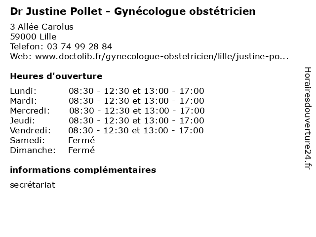 | Lundi | 08:30-12:30 et 13:00-17:00 |