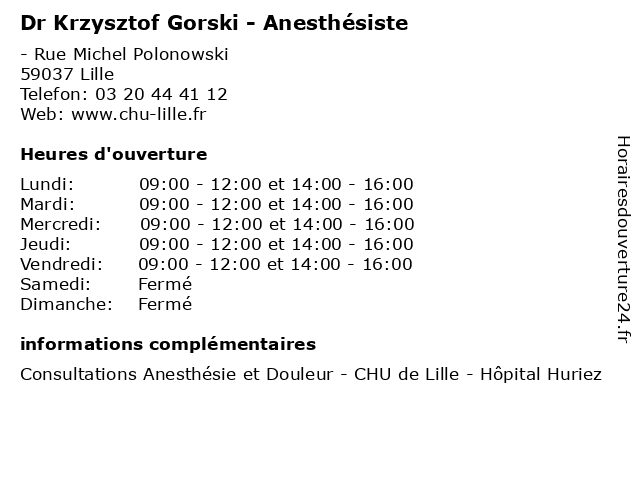 | Mercredi | 09:00-12:00 et 14:00-16:00 |