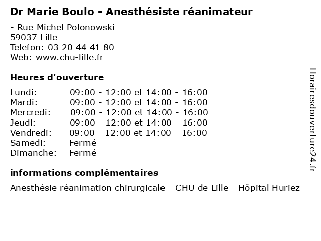 | Mercredi | 09:00-12:00 et 14:00-16:00 |
