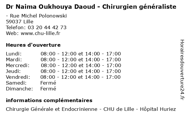| Lundi | 08:00-12:00 et 14:00-17:00 |