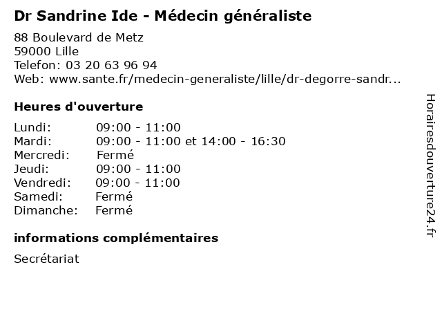 | Mardi | 09:00-11:00 et 14:00-16:30 |