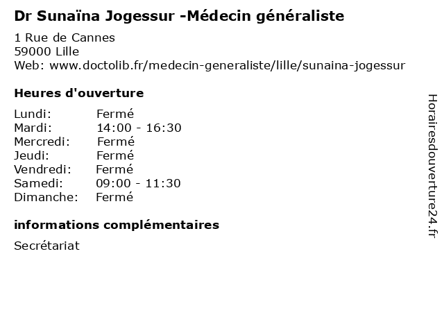 | Lundi | Fermé |