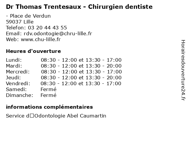 1 Dr Thomas Denneulin - Chirurgien dentiste (Distance: 0,00 km) - Place de Verdun, 59037 Lille abel, caumartin, chirurgien, denneulin, dentaire, dentiste, dr, d’odontologie, implantologie, parodontologie, service, thomas 2 Pr Thomas Colard - Chirurgien dentiste (Distance: 0,00 km) - Place de Verdun, 59037 Lille abel, caumartin, chirurgien, colard, dentaire, dentiste, d’odontologie, implantologie, parodontologie, pr, service, thomas 3 Dr Thomas Marquillier - Chirurgien dentiste (Distance: 0,00 km) - Place de Verdun, 59037 Lille abel, caumartin, chirurgien, dentaire, dentiste, dr, d’odontologie, implantologie, marquillier, parodontologie, service, thomas 4 Dr Thomas Bourhis - ORL - Chirurgien de la face et du cou (Distance: 0,10 km) - Rue Michel Polonowski, 59000 Lille bourhis, chirurgien, consultation, cou, de, docteur, dr, du, et, face, la, med, médecin, orl, thomas, traitement 5 Friterie Thomas (Distance: 0,44 km) Monsieur Thomas Wante, 59000 Lille friterie, restaurants, thomas, wante 6 Pr Pierre Thomas - Addictologue (Distance: 0,48 km) - Rue André Verhaeghe, 59000 Lille addictologie, addictologue, adiction, et, fontan, hôpital, nevrose, pierre, pr, thomas |