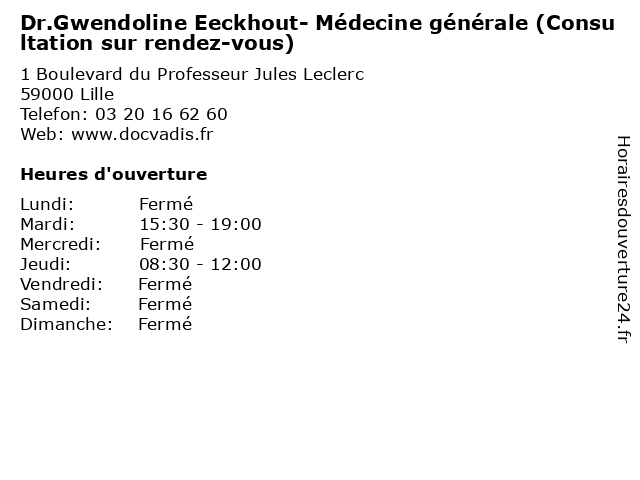 Termes de recherche pour Dr.Gwendoline Eeckhout- Médecine générale (Consultation sur rendez-vous):sur, générale, vous, medecine, santé, rendez, docteur, consultation, eeckhout, dr.gwendoline |