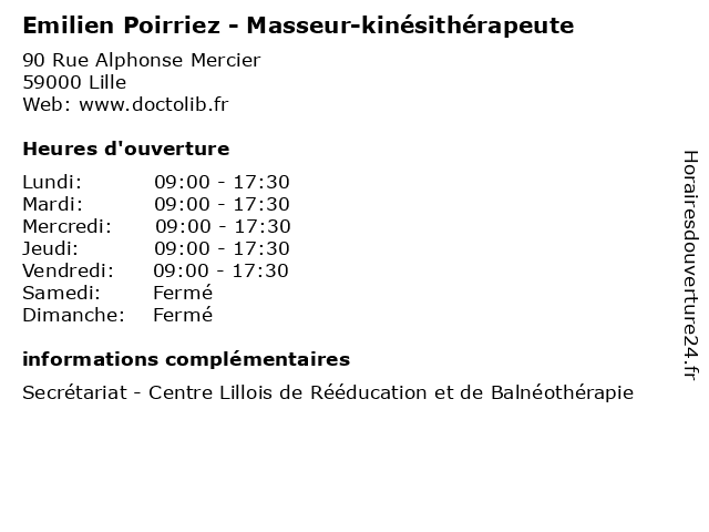 | Mercredi | 09:00-17:30 |