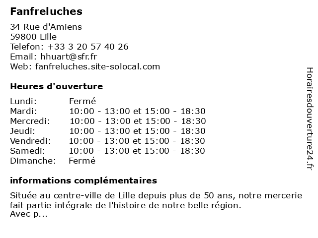 | Mardi | 10:00-13:00 et 15:00-18:30 |