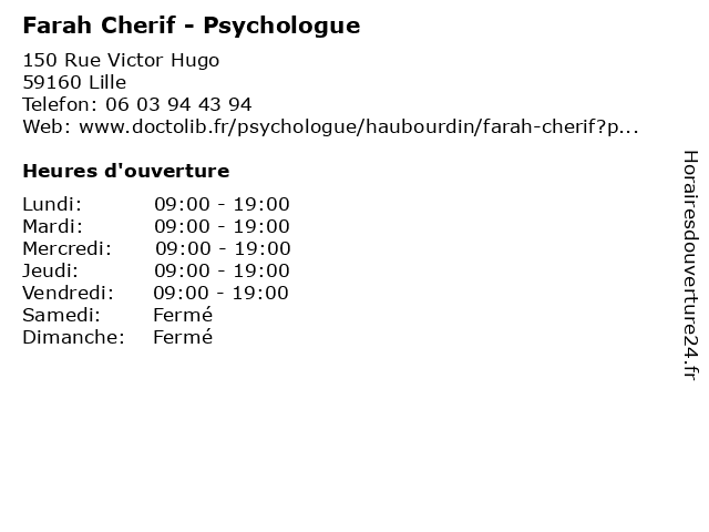 1 Farah Cherif - Psychologue (Distance: 2,42 km) 118 Rue Sadi Carnot, 59320 Haubourdin cherif, farah, folie, psychiatre, psychiatrie, psychiatrique, psychologue 2 Cherif Sayoud (Distance: 3,18 km) Funky Burger Porte 3 Immeuble 1 9 Etage, 59130 Lambersart cherif, restaurants, sayoud 3 Farah Kilani - Psychologue (Distance: 3,88 km) 107 Rue d'Arras, 59000 Lille farah, kilani, psy, psychiatre, psychologue, sante, soins 4 Maître Leïla Bachir Cherif - Avocate (Distance: 3,94 km) 58 Avenue du Peuple Belge, 59000 Lille avocate, avocats, bachir, cherif, civils, droits, juridiques, leïla, maître 5 Cherif Boucherie (Distance: 15,75 km) 266 Rue De Gand, 59200 Tourcoing boucherie, boucheries, charcuterie, cherif, viande 6 Boucherie Cherif Najib (Distance: 15,75 km) 266 Rue De Gand, 59200 Tourcoing boucherie, boucheries, cherif, najib, viandes, volaille |