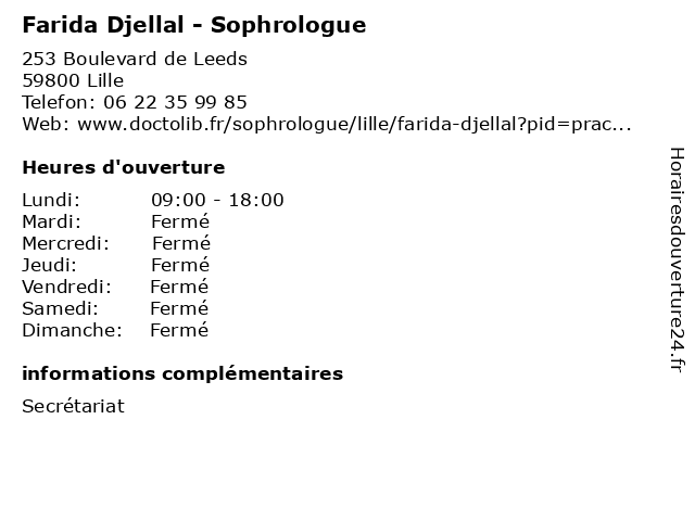 | Samedi | Fermé |