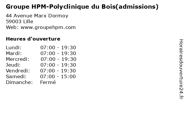 | Lundi | 07:00-19:30 |