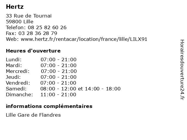 2 Hertz (Distance: 2,87 km) 17 Rue du Général-Leclerc, 59350 Saint-André-les-Lille agence, hertz, location, voiture 4 5 Hertz (Distance: 25,67 km) n/a Rue Ferdinand Buisson, 62970 Henin-Beaumont hertz, location de voitures, location longue durée, voiture, véhicules 6 Hertz (Distance: 43,74 km) 626 Boulevard Harpignies, 59300 Valenciennes hertz, location de voitures, location longue durée, voiture, véhicules |