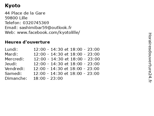 | Samedi | 12:00-14:30 et 18:00-23:00 |