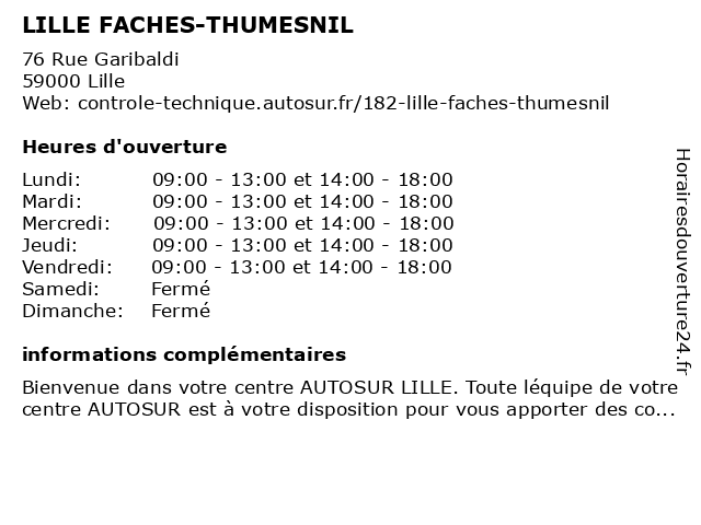 | Lundi | 09:00-13:00 et 14:00-18:00 |