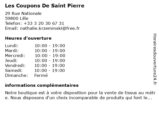 | Dimanche | Fermé |